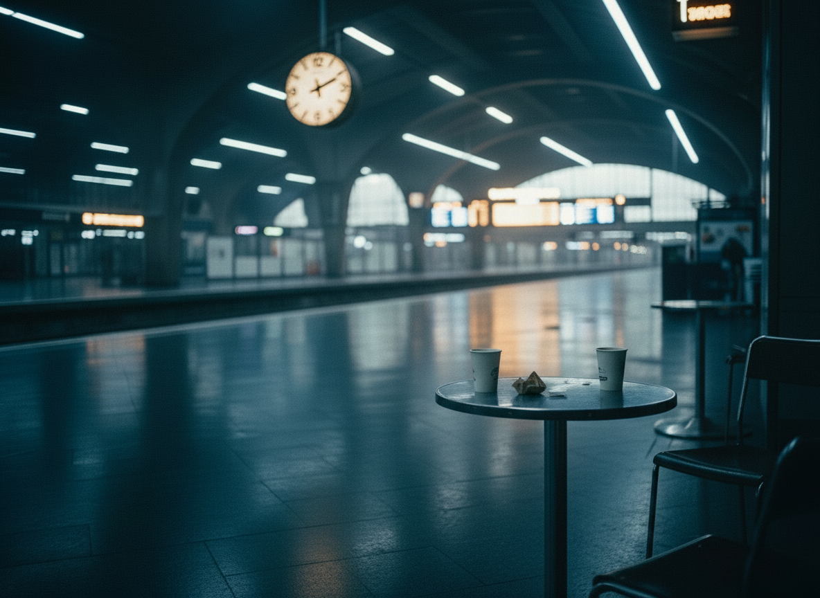 „Ein Ort, an dem niemand lange bleibt“, sagte Hoff. „Hauptbahnhof. Café in der Halle. Du kennst es.“